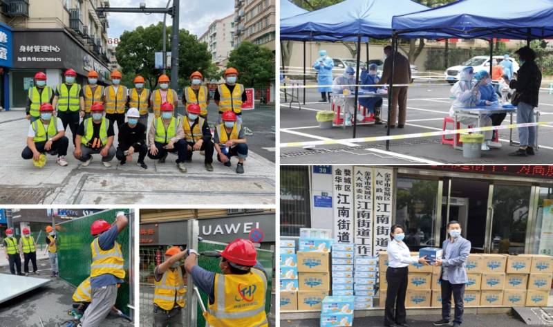 新冠肺炎疫情期间,核金建设集团在统筹抓好疫情防控和复工复产工作同时,积极履行国有地勘单位社会 责任,组织100余名⼲部职工成立疫情志愿服务队,共参与疫情防控志愿活动共计1500余⼈次,参与属地隔离场 地封控施工,积极捐赠抗疫物资等。因抗疫表现突出1⼈获“浙江省抗击新冠肺炎疫情先进个人”、1⼈获婺城区 “最美战疫志愿者”、2⼈获婺城区白龙桥首批战“疫”先锋个人荣誉称号。